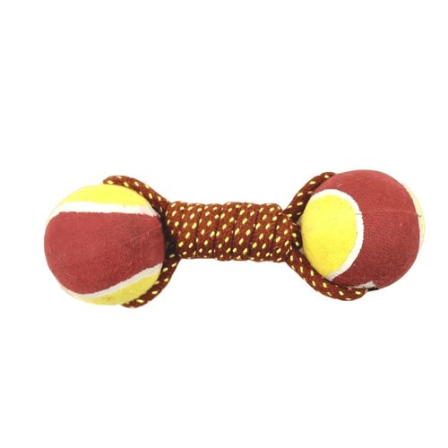 COBBYS PET Dumbbell made of rope and 2 tennis balls 20 cm toy for dogs