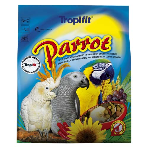 Plnohodnotná krmovinová zmes pre veľké papagáje. Zloženie: semená (vrátane slnečnice 24%, kardi 10%, tekvicové semienka 4%, hrach 3%, fazuľa mungo 2%, korenie 0,5%), ovocie (sušené jablká obsiahnuté v granulách 2%, sušené jablko 2%, sušený ananás 1%, sušený banán 1%, sušené datle 1%, sušené plody divokej ruže 0,5%), zelenina (sušená mrkva 2%, sušená repa 2%, sušené hľuzy topinambura 1%, chilli papričky 1%), orechy (arašidy 3%, vlašské orechy 1%), obilniny. Analytické zložky: dusíkaté látky 12,0%, oleje a tuky 15,3%, vláknina 12,5%, vlhkosť 8,5%.