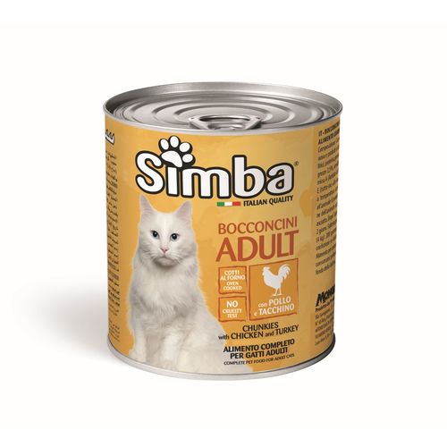 SIMBA CAT CHUNKIES WITH CHICKEN AND TURKEY je kompletné krmivo pre dospelé mačky. Kúsky v omáčke, formulované s kvalitnými prísadami, ako je kuracie mäso a morčacie mäso, zdroj bielkovín a minerálov, sú pečené v rúre, aby zvýraznili ich prirodzenú chuť a stimulovali denný apetít vášho domáceho maznáčika. Receptúra bola vyvinutá so špecifickou kombináciou vitamínov A-D3-E, aby spĺňala nutričné požiadavky na denné potreby vášho domáceho maznáčika. Bez pridaných farbív a konzervačných látok.