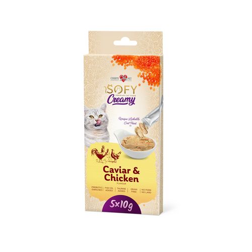 COBBYS PET SOFY Creamy Caviar mäsová krémová pochúťka s kaviárom a kuracím mäsom. Doplnkové krmivo pre mačky.