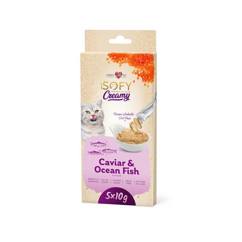 COBBYS PET SOFY Creamy Caviar mäsová krémová pochúťka s kaviárom a morskými rybami. Doplnkové krmivo pre mačky.