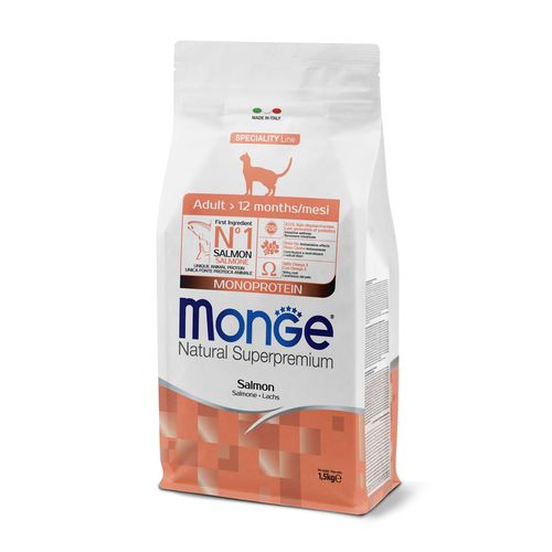 MONGE Natural Superpremium Adult 1,5kg monoproteínové krmivo s lososom pre dospelé mačky