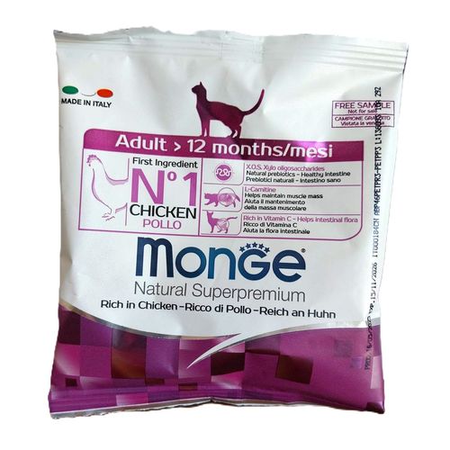MONGE Natural Superpremium Adult 50g vzorka, suché krmivo s kuracím pre dospelé mačky