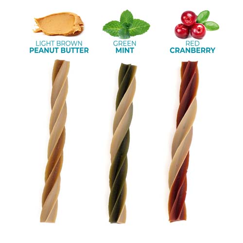 Dentálne pochúťky pre dospelých psov na ústnu hygienu, zabezpečia svieži dych, pomáhajú pri odstraňovaní zubného povlaku. Receptúra bez obilnín a na rastlinnej báze. Bez pridaných farbív alebo aróm.