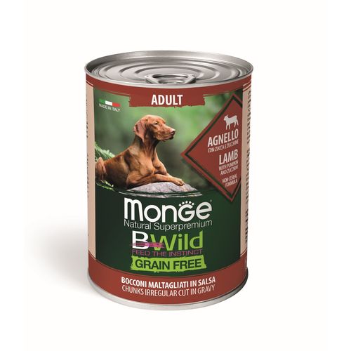 Monge Natural Superpremium BWild Grain Free Formula All Breeds Adult Dog Lamb with Pumpkin and Zucchini je kompletné a vyvážené krmivo pre dospelé psy. Špeciálne vyvinuté pre pohodu psov všetkých veľkostí vďaka výberu alternatívnych zdrojov sacharidov, ktoré nie sú derivované z obilnín, ako sú cuketa a tekvica. Receptúra je obohatená o xylo-oligosacharidy (XOS), prebiotiká novej generácie na podporu črevného zdravia. Zloženie podporuje kĺby vďaka obsahu glukozamínu a chondroitín sulfátu. Odporúča sa pre psov všetkých veľkostí.