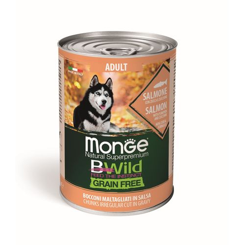 Monge Natural Superpremium BWild Grain Free Formula All Breeds Adult Dog Salmon with Pumpkin and Zucchini je kompletné a vyvážené krmivo pre dospelé psy. Špeciálne vyvinuté pre pohodu psov všetkých veľkostí vďaka výberu alternatívnych zdrojov sacharidov, ktoré nie sú derivované z obilnín, ako sú cuketa a tekvica. Receptúra je obohatená o xylo-oligosacharidy (XOS), prebiotiká novej generácie na podporu črevného zdravia. Zloženie podporuje kĺby vďaka obsahu glukozamínu a chondroitín sulfátu. Odporúča sa pre psov všetkých veľkostí.