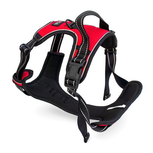 - Pevná rukoväť - Dodatočný spôsob kontroly: Poskytuje okamžitú kontrolu a jednoduchú pomoc pri zdvíhaní pri nastupovaní/vystupovaní z auta alebo prekonávaní prekážok. Umožňuje tiež ľahké zdvihnutie, keď je pes príliš vzrušený a rozbehne sa priamo dopredu, alebo keď sa stretne s naliehavým nebezpečenstvom.