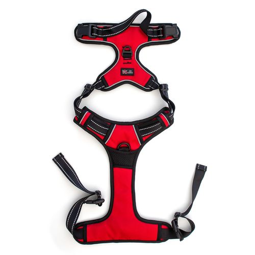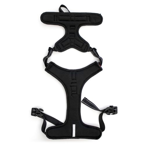 - Nastaviteľný dizajn: Štyri nastaviteľné popruhy vám umožňujú vytvoriť dokonalé, priliehavé uchytenie pre vášho chlpatého priateľa. Jednoducho posuňte nastavovací prvok, aby ste postroj podľa potreby utiahli alebo uvoľnili.