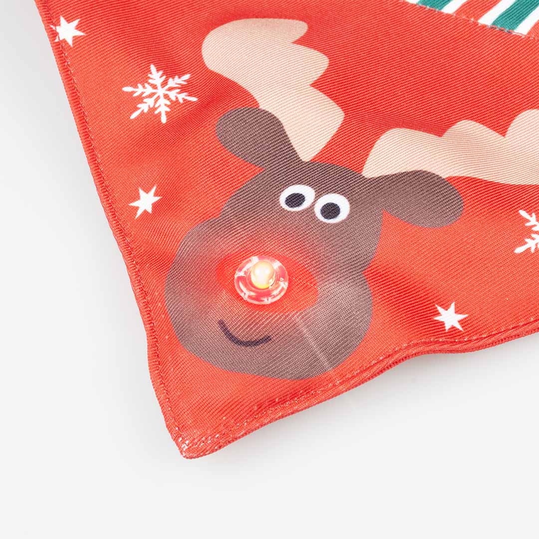 Doprajte mu kúsok sviatočnej mágie so svietiacou šatkou, ktorá rozžiari každý vianočný večer a prinesie úsmev do každej rodiny.S touto zábavnou svietiacou vianočnou šatkou od Duvoplus bude váš pes alebo mačka pripravený na všetky vianočné oslavy. Šatka má 3 svetelné režimy – stále svetlo, rýchle a pomalé blikanie. Vianoce ešte nikdy neboli také veselé a žiarivé!