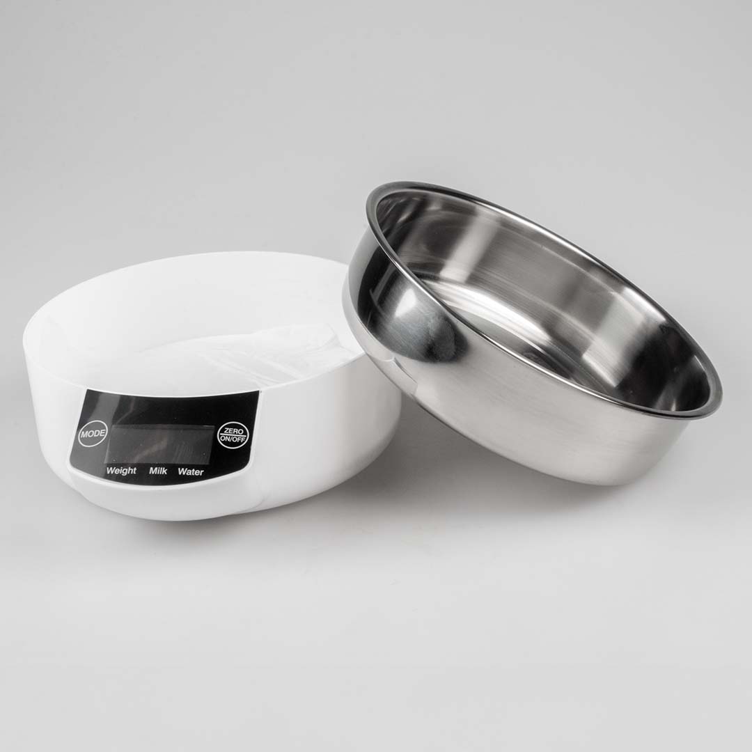 Miska na jedlo z nerezovej ocele s integrovanou digitálnou váhou