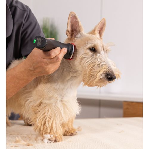 Jeho ergonomický a perfektne tvarovaný dizajn zaručuje, že strojček skvele padne do ruky, čo zvyšuje komfort pri strihaní. Súčasťou balenia je nastaviteľná strihacia hlava s možnosťou nastavenia dĺžky strihu od 0,7 mm do 3 mm a sada plastových nástavcov, ktoré vám umožnia dosiahnuť rôzne dĺžky srsti.