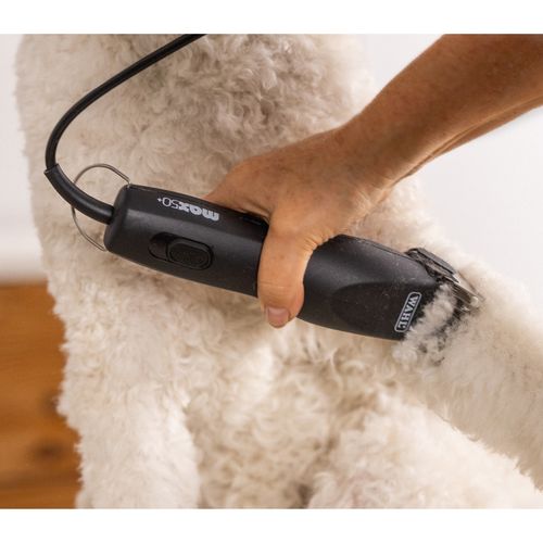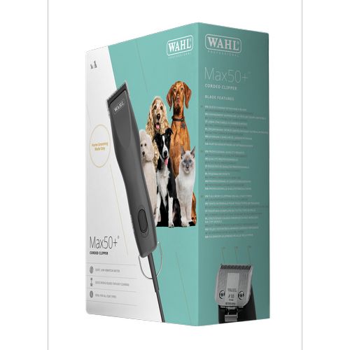 Profesionálny strojček na srsť Wahl Max 50+ disponuje silným dvojrýchlostným motorom s výkonom 3000 otáčok za minútu a 3400 otáčok za minútu, ktorý si poradí so všetkými typmi srsti. Celokovová hlavica so šírkou 46 mm má pevnú výšku strihu 1,5 mm. Hlavicu je možné zo strojčeka ľahko sňať a vymeniť za inú. Súčasťou balenia sú dva nadstavce pre zmenu výšky strihu o veľkosti 6 mm a 13 mm. Strojček je ideálny na zastrihovanie srsti po celom tele. Vďaka extrémne tichému chodu a prevádzke bez vibrácií je strojček vhodný aj pre nervóznych miláčikov. Robustný design strojčeka zvyšuje jeho odolnosť, ergonomické tvarovanie s protišmykovou rukoväťou a nízkou hmotnosťou (360 g) potom zaisťuje pohodlnú manipuláciu. K tej prispieva aj 3 metre dlhý kábel. Súčasťou balenia je čistiaca kefka a olej.