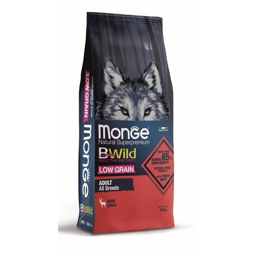 Monge Bwild Low Grain All Breeds Adult Dog Deer je kompletné a vyvážené krmivo pre dospelé psy. Vysoký obsah živočíšnych bielkovín z jelenej zveriny zaručuje vyváženú stravu, ktorá rešpektuje prirodzené inštinkty vášho zvieraťa.