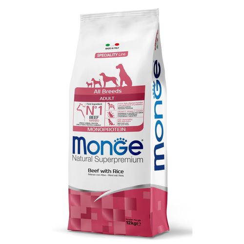 MONGE Natural Superpremium All Breeds Adult 12kg monoproteínové krmivo hovädzie/ryža pre dospelé psy všetkých plemien