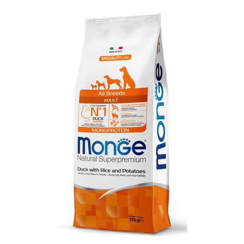 MONGE Natural Superpremium All Breeds Adult 12kg monoproteínové krmivo kačica/ryža/zemiaky pre dospelé psy všetkých plemien
