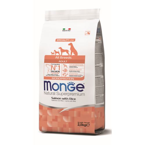 MONGE Natural Superpremium All Breeds Adult 2,5kg monoproteínové krmivo losos/ryža pre dospelé psy všetkých plemien