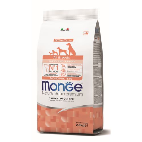 MONGE Natural Superpremium All Breeds Puppy 2,5kg monoproteínové krmivo losos/ryža pre šteňatá všetkých plemien